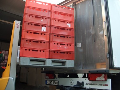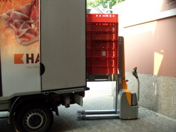 Der neue EMC Elektro-Deichselstapler beim Be- und Entladen eines LKW.